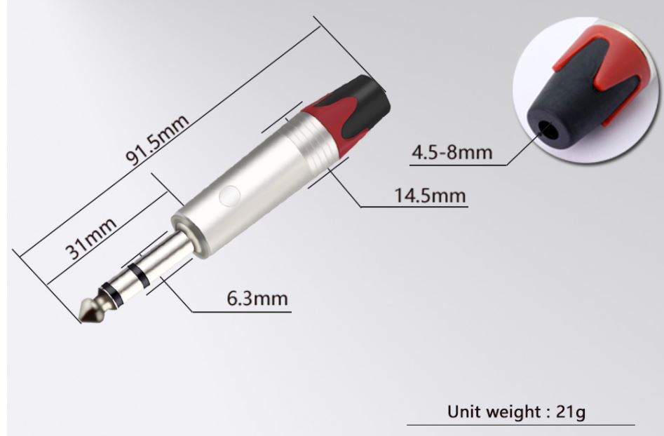 Conector Jack macho de cable de soldadura, Conector de micrófono de Latón chapado en oro, 3 polos estéreo, 6,35 pulgadas, 1/4 MM, .